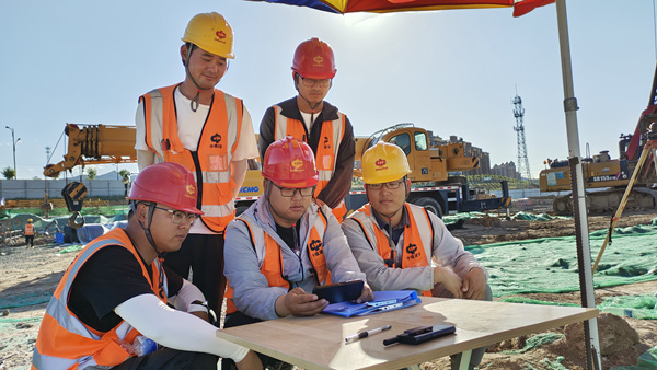 (6月29日,郑州分公司赤城安置房项目5名团员青年在项目现场认真学习团的十九大精神)