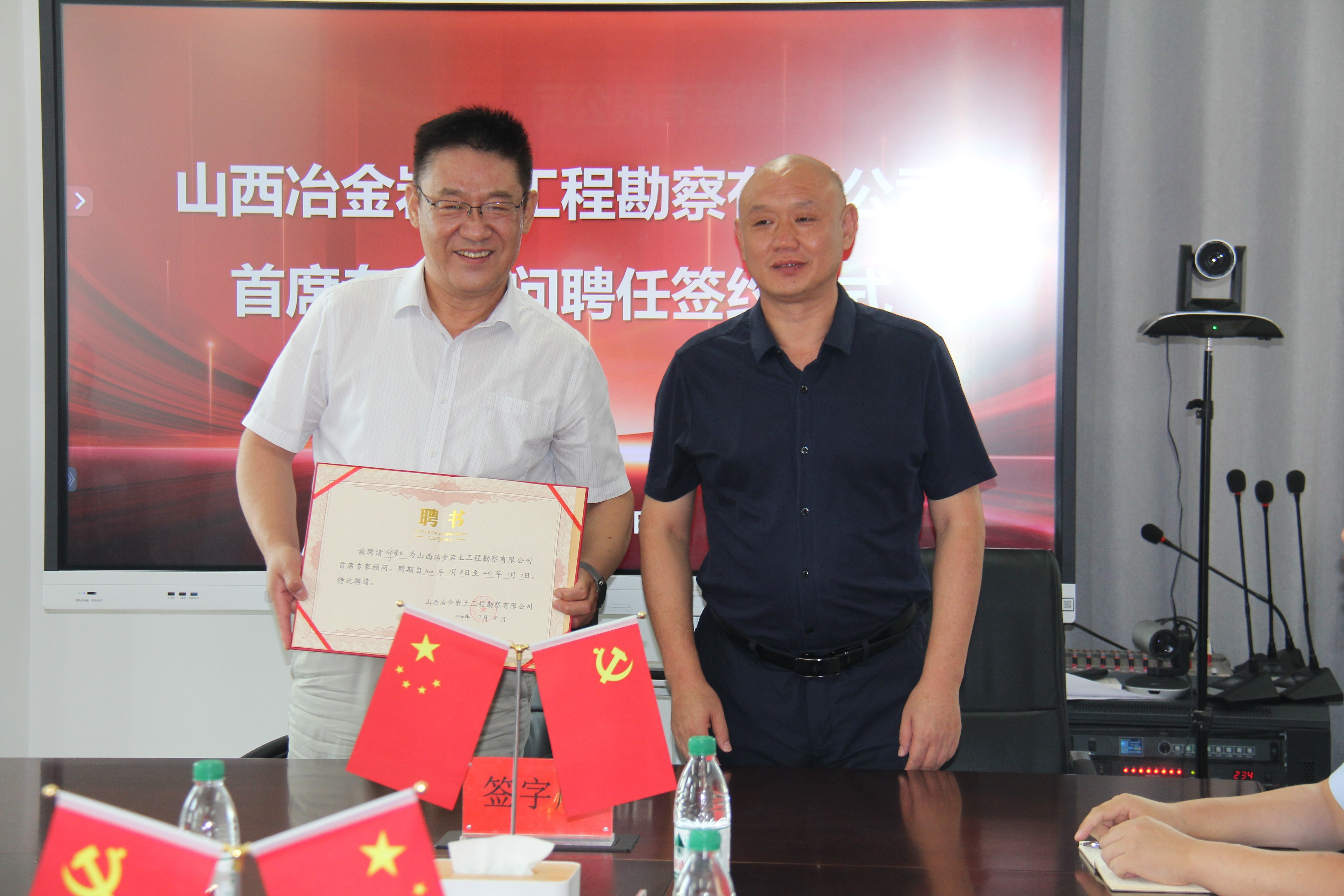 明俊杰代表岩土公司与师学义教授签订了《山西冶金岩土工程勘察有限公司首席专家顾问聘用合同协议书》。